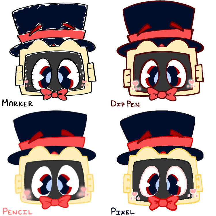 | pencil | moderate and a bit slow to execute, much softer lines that are multi-colored, comes with clean coloring, comes with three slightly different versions of rendering, my personal default lineart type | $4.00 |